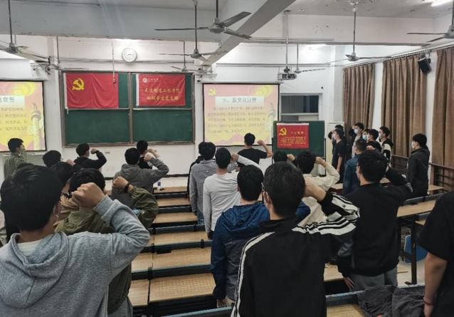 最后,在黨支部書記威力旺老師的帶領(lǐng)下,所有成員右手握拳,向黨旗莊嚴(yán)宣誓:“我志愿加入中國共產(chǎn)黨,擁護(hù)黨的綱領(lǐng),遵守黨的章程,履行黨員義務(wù),執(zhí)行黨的決定,嚴(yán)守黨的紀(jì)律,保守黨的秘密,對黨忠誠,積極工作,為共產(chǎn)主義奮斗終身,隨時準(zhǔn)備為黨和人民犧牲一切,永不叛黨。”聲音在教室中回蕩,誓詞也將牢牢刻在在場每一位同學(xué)心中,時刻警醒著同學(xué)們牢記自己的身份與使命。至此本次支部黨會大會圓滿結(jié)束。