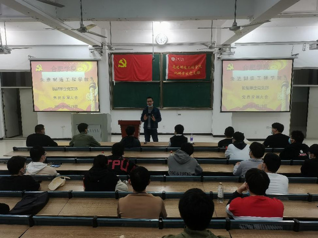 2022年4月19日19:30,合肥學(xué)院先進(jìn)制造工程學(xué)院機(jī)制學(xué)生黨支部于36號樓3階梯教室舉行支部黨員大會。大會旨在積極響應(yīng)黨的號召、吸納優(yōu)秀積極分子、為支部更好地發(fā)展打下堅實的基礎(chǔ)。會議由黨支部書記威力旺老師主持,會議宣布主題為討論確定積極分子轉(zhuǎn)發(fā)展對象問題。參會人員全程佩戴口罩,并保持一定距離就坐。