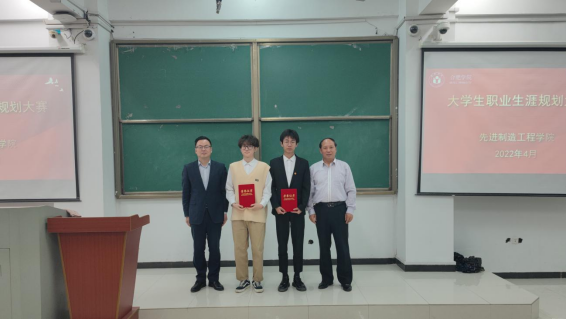 為了幫助學生明確自身職業目標,進一步增強我院學子求職能力,先進制造工程學院于2022年4月28日在38棟3階梯教室舉辦了首屆大學生職業生涯規劃大賽。校友辦陳昌躍主任、大學生創新創業中心劉沛平主任、校團委李妍妍副書記、學生處就業指導中心鄭國平副主任,先進制造工程學院黨委書記杜娟書記出席擔任評委。學生處副處長張應杰、先進制造工程學院黨委副書記李秀娟書記、學院各輔導員應邀參加。