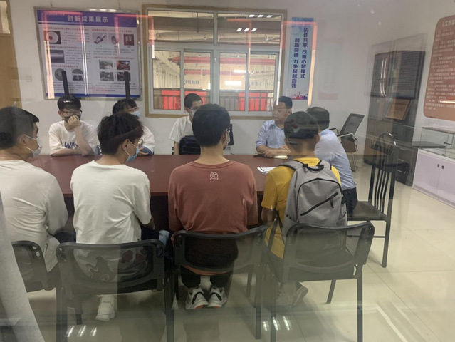 東風機電企業機加分廠負責人、合肥學院機械專業校友丁平帶著調研組實地參觀了工作場所、榮譽墻、科研場所等,從公司發展歷程、員工規模、人員結構以及相關福利待遇等方面介紹了公司的發展概況。人力負責人對我院八位畢業生進行了現場面試,詳細的為我院畢業生介紹了單位薪資待遇及職業發展渠道等學生關心的具體事宜,并對我院畢業生培養質量進行高度肯定。