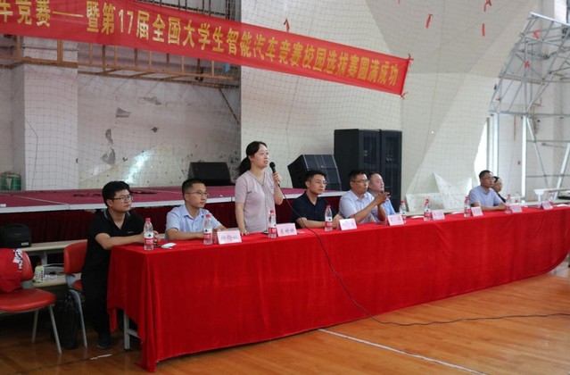 (校團委副書記李妍妍宣布本次智能車校賽開始)
