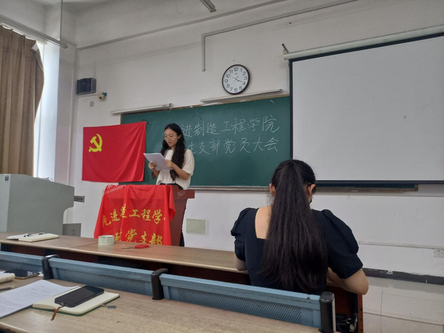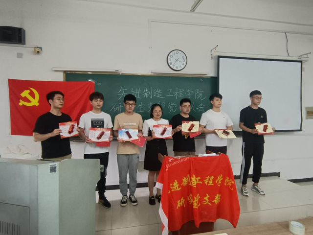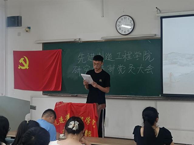 2022年5月31日下午14:30,先進制造工程學院研究生黨支部在35棟114教室舉行2022年上半年黨員發展與轉正大會,共有33名黨員8名發展對象參加會議,會議由研究生黨支部書記沈丹丹主持。
