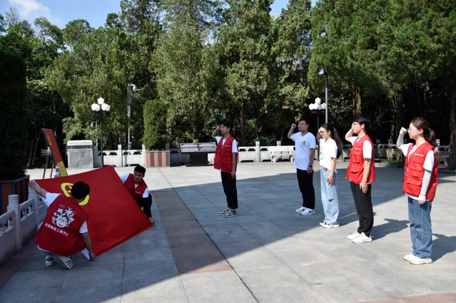 臺(tái)階的盡頭,便是刻有劉伯承元帥親筆題字“燎原星火”的烈士紀(jì)念碑。走到紀(jì)念碑前,肅穆的環(huán)境讓氣氛變得沉寂,團(tuán)隊(duì)成員在紀(jì)念碑前為戰(zhàn)爭(zhēng)中犧牲的戰(zhàn)士致敬,并且在院團(tuán)委學(xué)生兼職副書記徐桐的帶領(lǐng)下重溫了入團(tuán)儀式,宣讀了入團(tuán)誓詞。在紀(jì)念碑的后面,是金寨縣紅軍紀(jì)念堂。這里記錄著所有埋葬于此的戰(zhàn)士的名錄。他們有的人活著走出了戰(zhàn)爭(zhēng),見證了共和國(guó)的建立和崛起,而有的人將自己的生命永遠(yuǎn)定格在了那個(gè)時(shí)代,用自己的犧牲換來了共和國(guó)的今天。