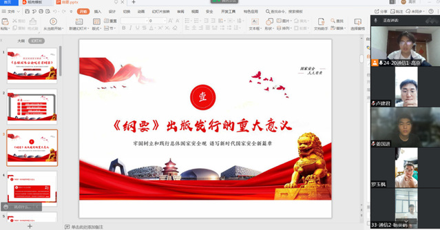 在此次學習活動中,各黨小組對國家安全的概念、《綱要》出版的背景、意義以及其部分的內容進行了總體且細致的學習。除此之外,一些黨小組進行了一些創新性學習,如組織二組回顧了國家安全法曲折的發展,宣傳二組針對國家安全內涵要義中的七對關系進行重點學習,青年黨小組對中央發布的學習通知及《綱要》中總書記的金句進行了宣讀。