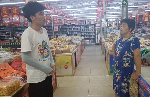 接著,調研人員來到了阜南縣蒙洼蓄洪區里的老觀鄉,采訪到在朗氏超市工作的徐翠霞老人。老人回憶到,“7月19日下午村干部開始通知撤離,鄉干部、村干部、志愿者村民和前來支援的武警官兵一道分成若干小組,挨家挨戶幫村民搬東西,一直搬到了凌晨3點多,超市里價值300多萬元的貨物這才得以安全轉移,后續政府發放了很多礦泉水、火腿腸、方便面等救災物資,并根據各戶村民的實際受災情況給予了相應補貼,反正國家扶持政策好,農民不受罪”。