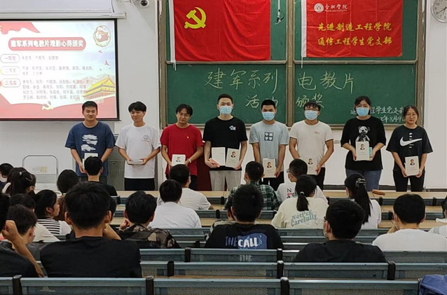 通信工程學生黨支部于2022年8月29日晚6點30分于36棟2jt舉辦黨支部暑期學習活動激勵儀式。本次激勵活動對7月份建黨系列電教片、8月份建軍系列電教片以及紅色基地視頻宣講活動優秀獲獎者進行線下頒獎表彰,旨在發揮先進示范引領作用,鼓勵支部成員參與支部建設,展示青年學子風采,向榜樣和先進學習。儀式由趙勇順擔任主持人,支部全體黨員和積極分子參與。