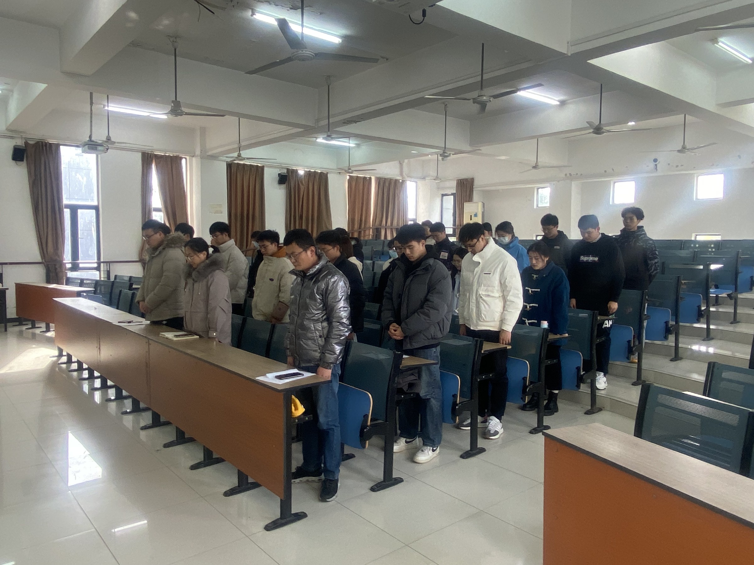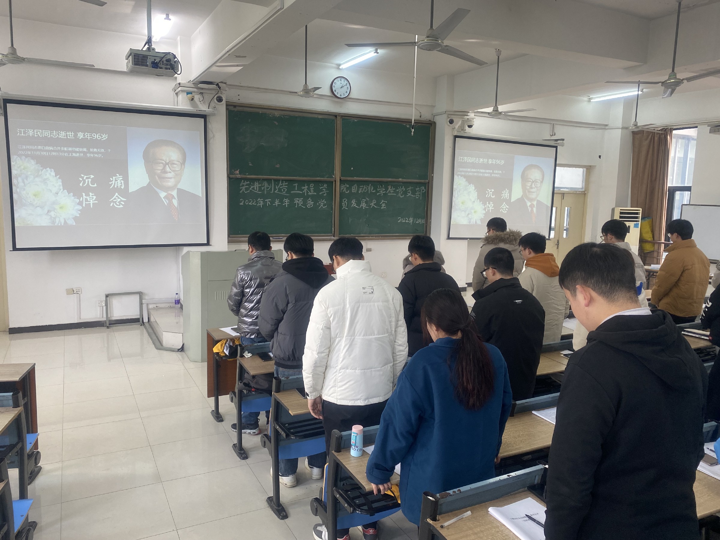 中國特色社會主義偉大事業的杰出領導者、黨的第三代中央領導集體的核心江澤民同志患白血病合并多臟器功能衰竭,搶救無效,于2022年11月30日12時13分在上海逝世,享年96歲。支部書記梅志強老師帶領全黨支部成員進行3分鐘默哀,表達對江澤民同志的哀悼。
