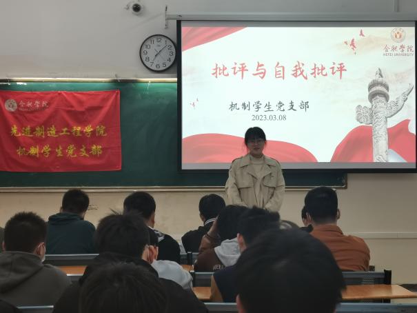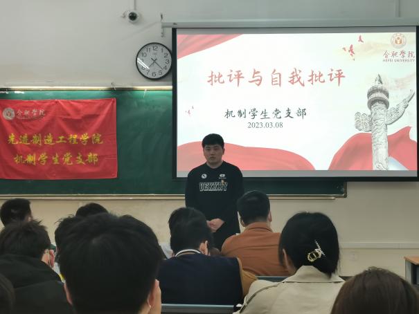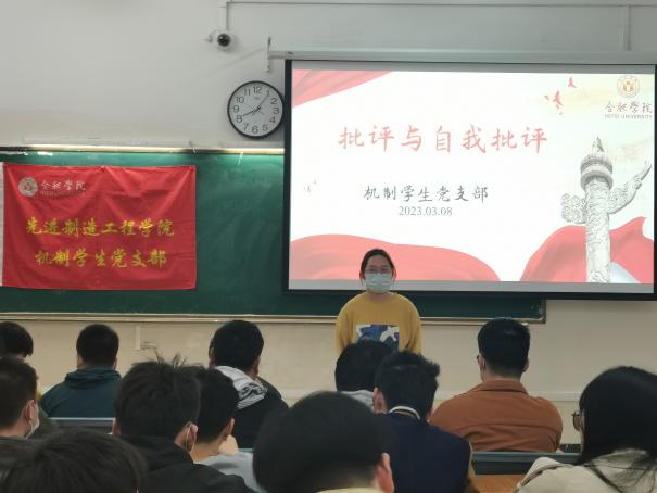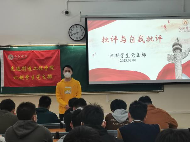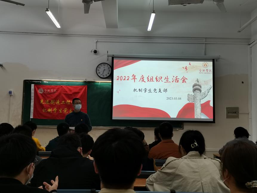 接著,威力旺代表支部委員會從黨史學習常態化長效化、喜迎二十大系列活動、支部特色亮點工作3個方面報告了2022年度黨支部工作情況,讓大家對支部過去一年以來的工作有更加深入的了解,并向所有在場黨員發放了黨支部班子民主評議表。隨后,全體黨員認真對照合格黨員標準、對照入黨誓詞、對照身邊先進典型,聯系實際進行了黨性分析,逐個進行了對照檢查。相互批評中,大家本著相互幫助、共同提高的原則,以對同志、對黨支部高度負責的態度,談主要問題和不足、提意見和建議、明確了今后努力奮斗的方向。經民主選舉投票,機制學生黨支部2022年度被評議優秀等次的同志分別為威力旺、徐夫勝、蘇浩然、李玉龍、李文會、葛文祥、張佳樂、舒昊八名同志。