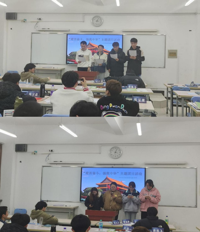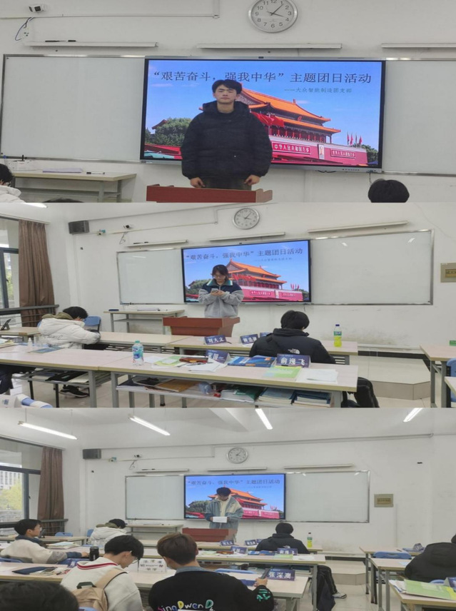 第一項流程是由團支書鄭仁杰帶大家認識了“艱苦奮斗,強我中華”的意義。自古以來,中華民族一直致力于建設一個繁榮昌盛的祖國,雖經歷了不斷的挫折,仍始終堅持著“自強不息”的偉大精神,推動著國家經濟和社會發(fā)展。“艱苦奮斗,強我中華”主題團日活動的主要內容就是激發(fā)大家的艱苦奮斗精神,讓我們銘記歷史,珍視團結氛圍,重視自身傳統(tǒng)文化,踐行著“艱苦奮斗,強我中華”的偉大精神,努力推進中國民族文化發(fā)展和社會進步。