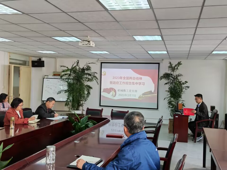 3月7日下午,在十四屆全國人大一次會議和全國政協十四屆一次會議勝利召開之際,機械工程系教工黨支部全體黨員和教師在40-305會議室,開展了“全國兩會精神暨政府工作報告”集中學習活動。秦強副院長出席了此次活動。