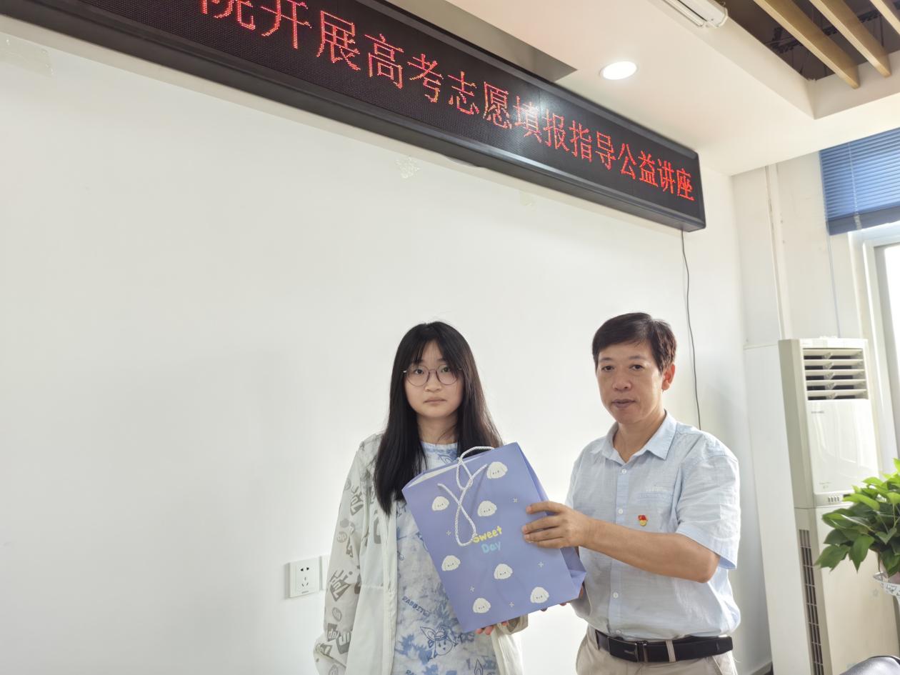 隨后,支部黨員前往康利居民區黨委開展高考志愿填報服務進社區活動,為剛參加完高考的學子及其家長提供志愿填報和大學專業學習相關的講座、咨詢及幫扶服務。活動現場氣氛熱烈,學生及家長就志愿填報的注意事項、專業選擇以及未來大學學習應該要把握的重點向黨員教師進行的現場咨詢,支部選派在相關領域有著豐富經驗的國內雙一流建設高校博士教師細致耐心地給學生和家長科學客觀的建議,幫他們答疑解惑,并給到場的學子贈送了學習用品,祝福和勉勵所有高考學子考上理想高校,學有所成、未來可期。