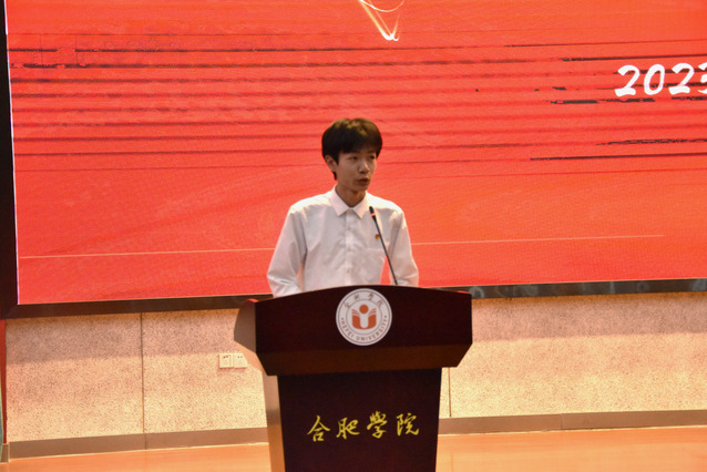 會議第四項,由老生代表徐桐同學進行演講。他講述自己的在校經歷,號召同學們積極參加校內活動,不斷提升自己的綜合能力。并希望大家以夢為馬、不負韶華,不忘初心、學有所成,在大學的新征程中,闖出自己的一番天地,度過一個無怨、無悔、無愧的大學時光。