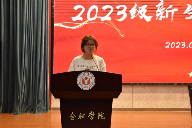 會議第三項,由新生代表程桉琪上臺演講。她表示,大家不僅需要壯志滿懷,更需要扎實的學識、踏實的實踐、刻苦的奮斗以及堅定的信念和長足的努力,同時她鼓勵大家投身時代的洪流,以有限的青春創造無限的未來,在大學學習生活中,不斷學習實踐,創造屬于自己的美好明天。