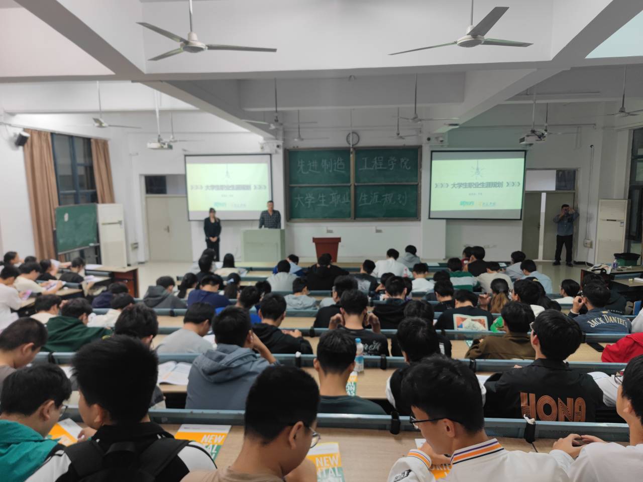 為增強(qiáng)大學(xué)生就業(yè)指導(dǎo)課程教學(xué)實(shí)效性,追求實(shí)用高效的就業(yè)指導(dǎo)效果,切實(shí)提高教學(xué)質(zhì)量,10月25日晚,先進(jìn)制造工程學(xué)院于37棟1階梯教室組織企業(yè)進(jìn)課堂開(kāi)展大學(xué)生職業(yè)生涯規(guī)劃講座,特邀新東方羅妍老師前來(lái)宣講,我院部分學(xué)生積極參加本次活動(dòng),輔導(dǎo)員張傲老師全程參與聽(tīng)講。