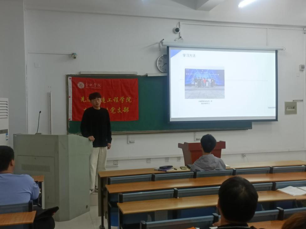 為使新生們更好地規(guī)劃自己的未來(lái)、度過美好的校園時(shí)光,進(jìn)一步樹立正確的社會(huì)觀、人生觀和價(jià)值觀,機(jī)制學(xué)生黨支部于2023年10月25日晚上在36棟106教室開展“學(xué)長(zhǎng)來(lái)了——我的校園時(shí)光”交流分享主題黨日活動(dòng)。本次活動(dòng)由機(jī)制學(xué)生黨支部書記威力旺老師主持,支部正式黨員周家喆、預(yù)備黨員程薇、發(fā)展對(duì)象溫司君及劉凡上臺(tái)分享了自己關(guān)于思想、學(xué)習(xí)、生活、工作等方面的心得,2023級(jí)機(jī)制專業(yè)全體新生參加了本次活動(dòng)。