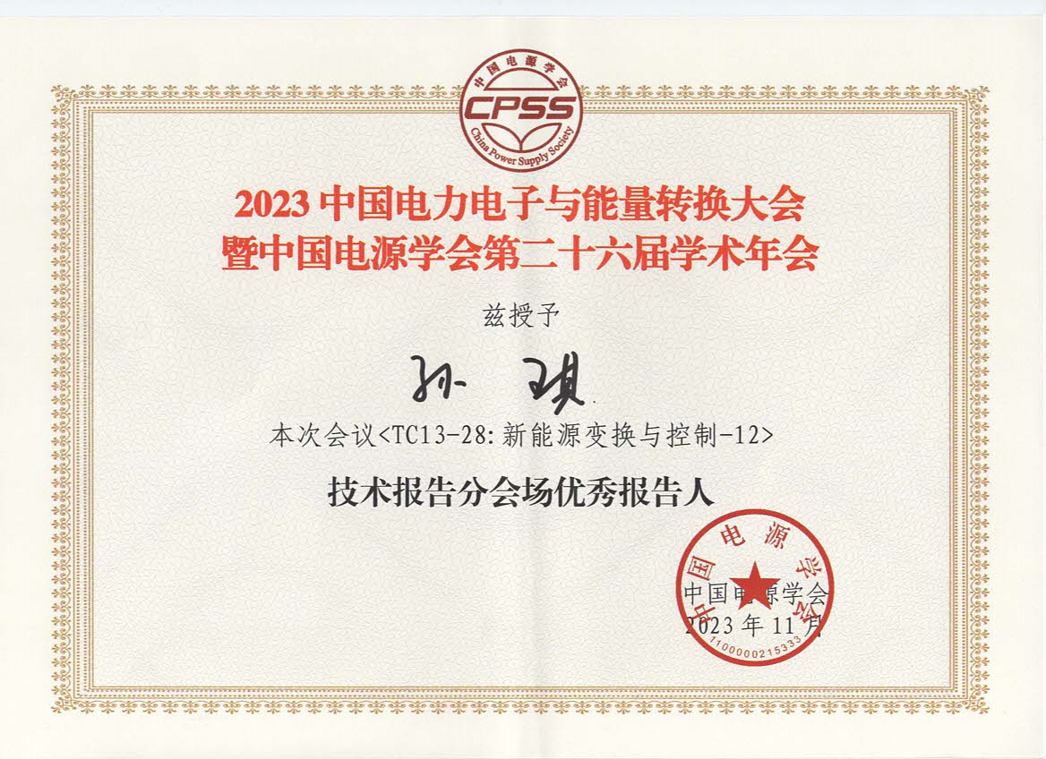 11月13日,由中國電源學會主辦的2023中國電力電子與能量轉換大會暨中國電源學會第二十六屆學術年會及展覽會(CPEEC & CPSSC 2023)在廣州圓滿落幕。合肥學院先進制造工程學院2021級電子信息研究生孫琪,在會議中做出了卓越的學術貢獻,其所作報告“高滲透率下基于模型預測控制的并網逆變器穩定性分析”在<TC13-28:新能源變換與控制-12>技術報告分會場中獲得了“優秀報告人”的殊榮。