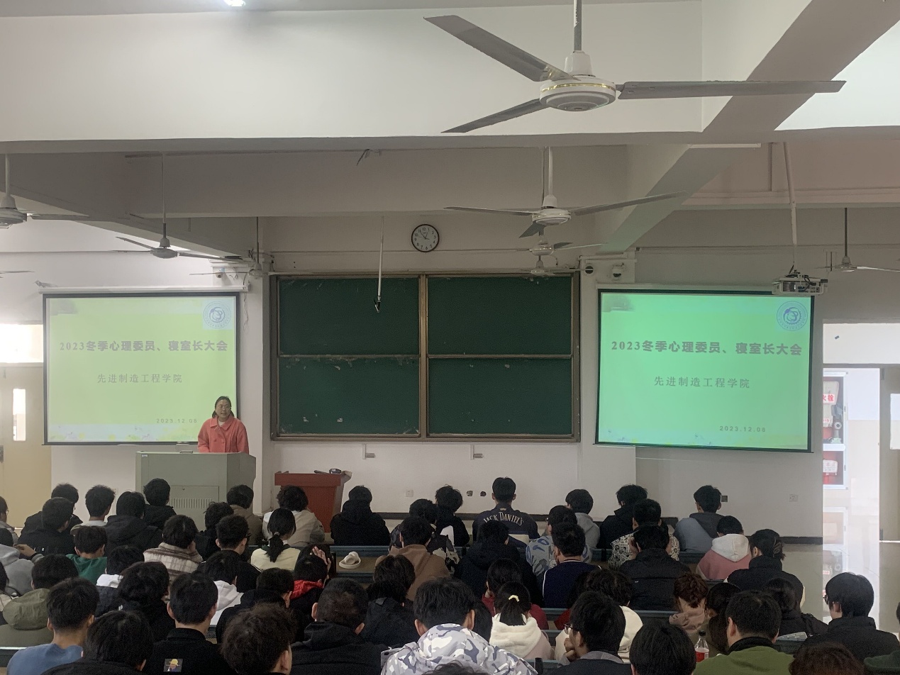 2023年12月8日,先進制造工程學院心理工作站召開2023年秋學期心理委員大會,我院黨委副書記蔡靈美老師、心理工作站負責人劉罡老師以及我院全體心理委員、寢室長(心理安全員)參加會議,會議由劉罡主持。