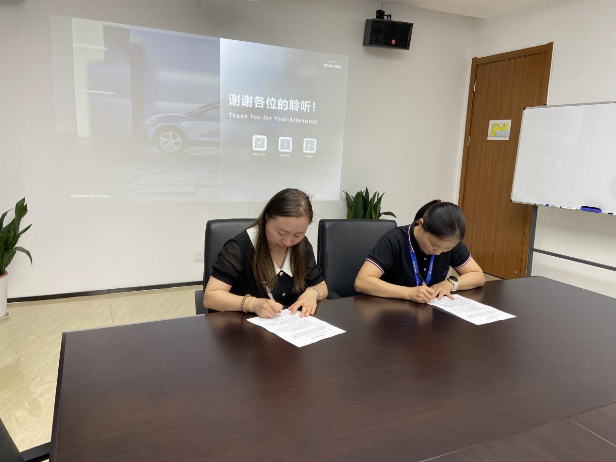 雙方就建立長期合作關系、共同培養人才、產學研合作等方面達成一致意見,并簽署校企合作協議,先進制造工程學院授予企業方“合肥大學先進制造工程學院大學生就業基地”牌匾。今年,上海保隆汽車科技(安徽)有限公司共招聘我院6名應屆畢業生。6名畢業生現場與企業簽訂了就業合同。