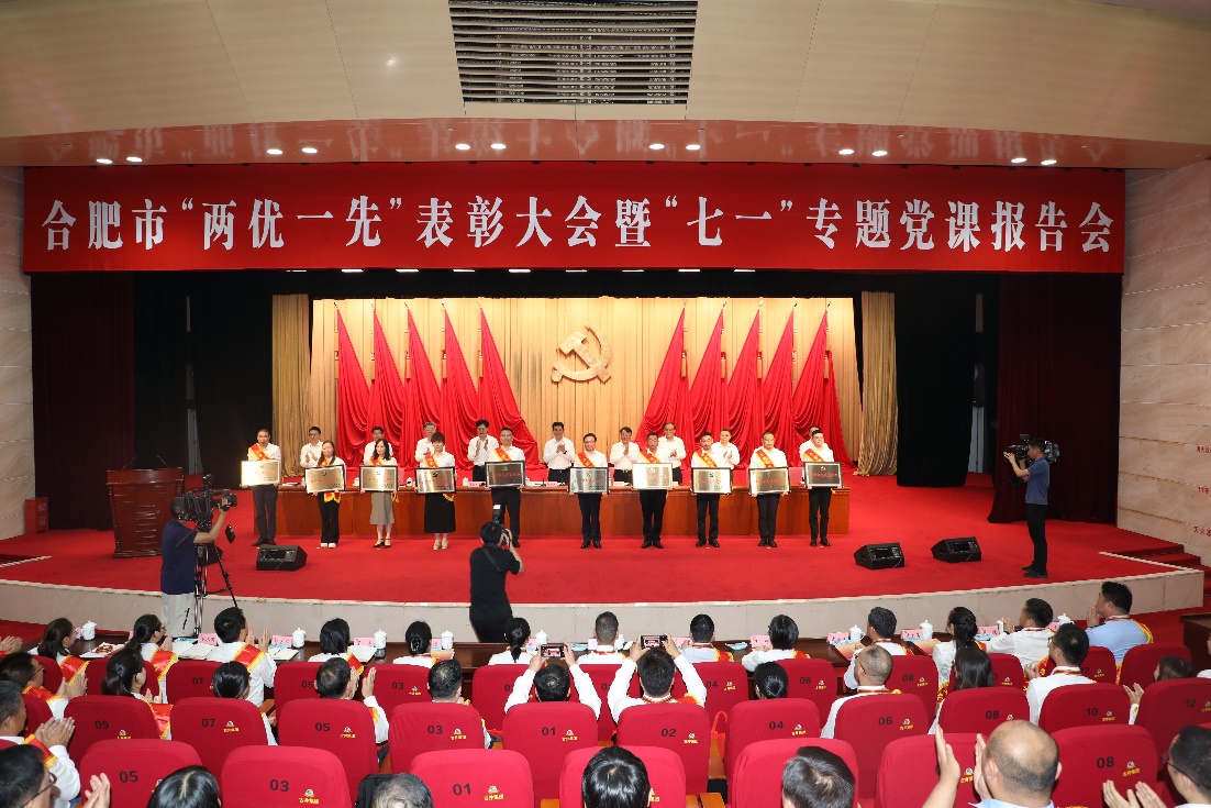 會議宣讀了合肥市委表彰決定,現場為全市“兩優一先”表彰對象代表頒獎,先進制造工程學院黨委書記杜娟作為合肥市先進黨組織代表上臺領獎。