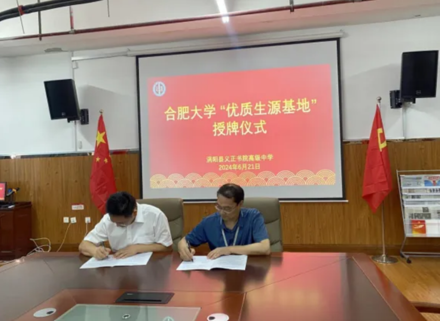 為進(jìn)一步促進(jìn)渦陽縣中學(xué)與我校的合作交流,使生源基地學(xué)生對我校招生政策及人才培養(yǎng)特色有進(jìn)一步了解,激勵更多優(yōu)秀學(xué)子報(bào)考合肥大學(xué),6月20日-21日,先進(jìn)制造工程學(xué)院副院長胡國華、電子信息系主任張勝、機(jī)械系主任吳其林一行前往渦陽縣開展招生宣傳、優(yōu)質(zhì)生源基地簽約和走訪工作。此次行程共走訪了渦陽縣第一中學(xué)、渦陽縣育萃高級中學(xué)、渦陽縣義正書院高級中學(xué)三所學(xué)校,并在渦陽縣義正書院高級中學(xué)舉行了合肥大學(xué)“優(yōu)質(zhì)生源基地”簽約和授牌儀式。