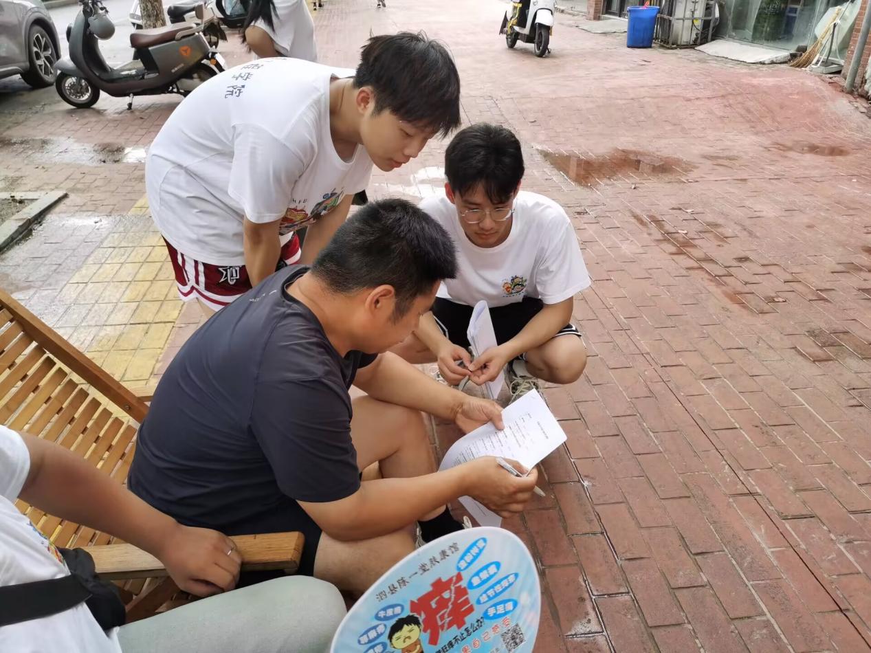 下午,在指導老師劉罡和王磊的帶領下,為提升調研效率,團隊對組織架構予以優化,分成三支小組,每個小組分別負責不同調研題目。團隊成員向泗縣不同鄉鎮居民發放問卷,積極與居民交流溝通,以便更全面地了解他們對于鄉村教育、基礎設施、醫療的看法,從而更好地收集問題并提出合理建議。