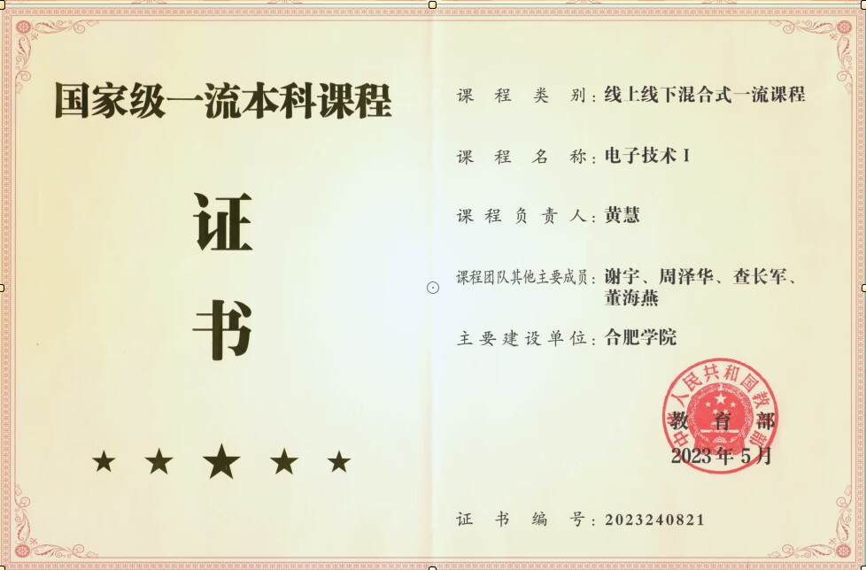 2 | 模擬電子技術 | 一流課程 | 2023 | 省級 | 安徽省教育廳 | |