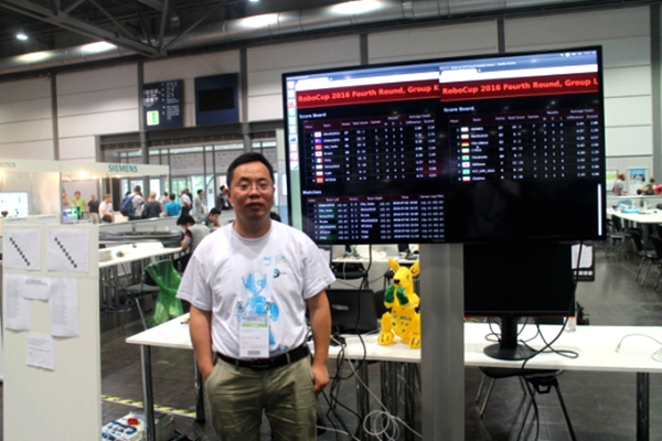 我校仿真2D機器人足球隊創(chuàng)建于2012年,短短4年時間,他們就在國際各項機器人足球比賽中嶄露頭角,僅在2016年,他們就榮獲:葡萄牙公開賽冠軍、伊朗公開賽季軍、機器人足球世界杯第七名……他們是如何從名不見經(jīng)傳到大放光彩?讓我們走近我校計算機科學與技術系副教授,也是多次帶領學生征戰(zhàn)機器人足球錦標賽的指導老師陳圣兵。