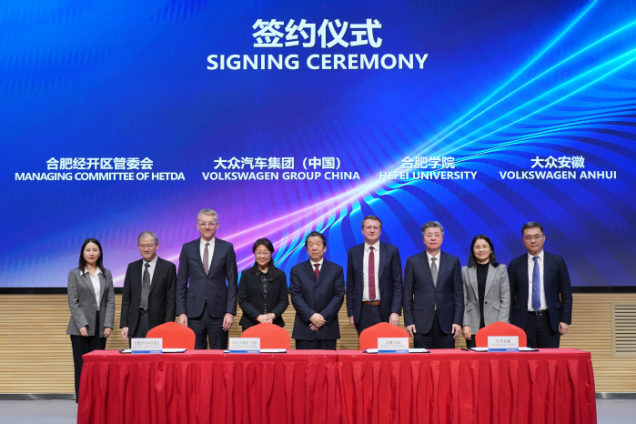 On February 20, hosted by Wu Chunmei, President of Hefei University, the Unveiling ceremony of the Volkswagen College was held in Hefei Sino-German Cooperation and Innovation Zone, aiming to promote the in-depth industry-education integration, school-enterprise collaborative education, and create a dual-system model of higher education cooperation. Jens Pfitzinger, Executive Vice President of Volkswagen Group (China), and Erwin Gabardi, CEO of Volkswagen (Anhui) Co., Ltd. attended the ceremony and delivered speeches.
