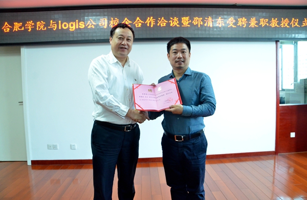 On June 7, Chair of the University Council, Cai Jingmin, welcomed Shao Qingdong, Chair of Beijing Logis Sci Tech Development Co., Ltd., and his group members. Shao and Cai had a talk over the project of co-building a logistics lab in Management Department, HFU. The staff concerned participated in the discussion.
