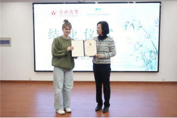 HFU President Wu Chunmei presented certificates of completion to all the students, encouraged them to continue to learn Chinese language and culture, and welcomed them to study at Hefei University.