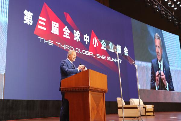 Cai Jingmin, president of HFU attends the forum to discuss the development of small and medium-sized enterprises in the new situation with more than 2,500 entrepreneurs from the world.