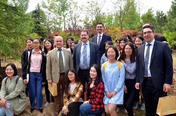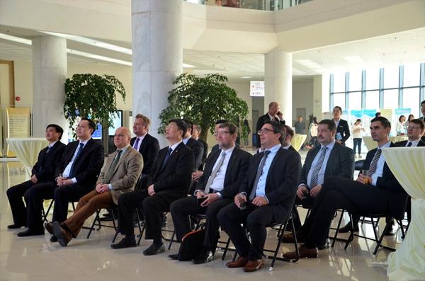 Zuerst wurde der Delegation Filmmaterial, mit einer allgemeinen Vorstellung der Universit?t und vom Besuch der Bundeskanzlerin Merkel und dem Premierminister Li Keqiang, gezeigt. W?hrend der Besichtigung gab Prof. Dr. Cai Jingmin einen überblick über die Universit?t. Der Schwerpunkt war die Entwicklung der Universit?t, die internationalen Bildungskooperationen, der Austausch der Studenten und Lehrkr?fte, der kulturelle Austausch und die wissenschaftliche Zusammenarbeit.