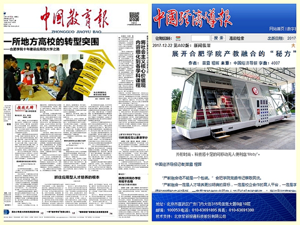 合肥學院理念和經驗獲得同類高校普遍認同,改革實踐獲得社會高度關注。新華社《國內動態清樣》《人民日報》《光明日報》《中國教育報》《中國經濟導報》等媒體近百次報道。2014年,學?!锻黄茖W科定勢 構建模塊化課程 重構能力導向的應用型人才培養教學體系》課題獲國家級教學成果一等獎,填補了安徽省屬高校國家級教學成果獎一等獎的空白。2016年,學校獲第四屆全國教育改革創新特別獎?!吨袊逃龍蟆奉^版以“一所地方高校的轉型突圍”“安徽:高?!皯谩敝涝阶咴綄挕薄?/span>安徽地方本科高校向應用型轉變:從自發到自為”等文章接連介紹了學校建設應用型大學經驗。2017年,學校成為全國百所“十三五”產教融合發展工程單位之一、國家高等教育智庫聯盟成員單位、國家新工科教育與研究成員單位和全球中小企業聯盟戰略合作伙伴,掀開發展新篇章。