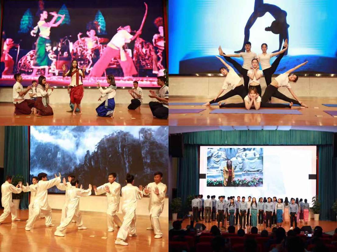 開幕式結束后,柬埔寨留學生帶來了精彩的學業匯報暨文藝演出。柬埔寨的傳統舞蹈讓觀眾感受到濃郁的柬埔寨文化氣息,太極拳表演用行云流水般的動作展現了剛柔相濟之美。FD民族舞蹈《彩云之南》,表演者用婀娜的肢體語言讓觀眾體會到傣族舞蹈的別樣魅力,留學生帶來的詩詞朗誦、漢服與書畫表演表達了學習中國文化的濃厚興趣和對中柬友誼長存的祝愿,文藝匯演在大合唱《我愛你中國》中落下帷幕,柬埔寨留學生以這首歌曲寄托對祖國的思念和對中國的喜愛。