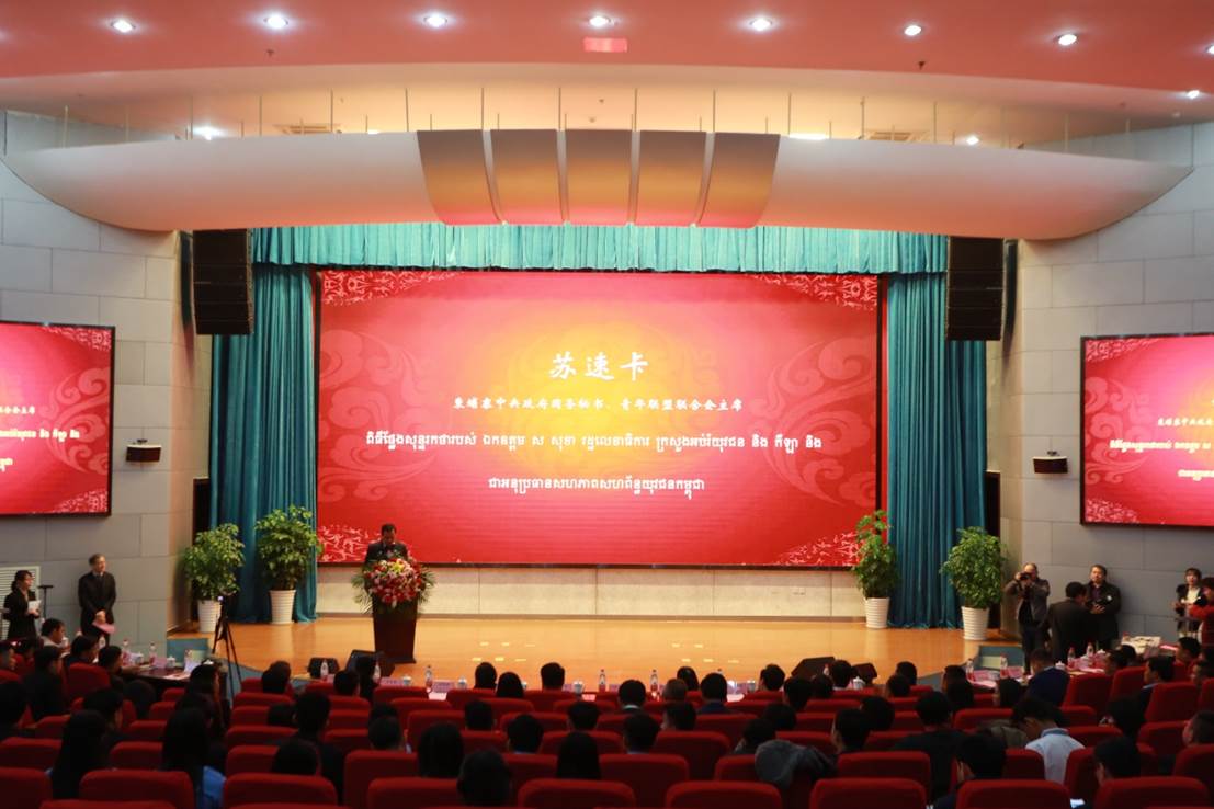 蔡敬民首先代表合肥學院致辭。他指出合肥學院一直堅持地方性、應用型、國際化的辦學定位,有著豐富的辦學經驗。他指出合肥學院積極響應中國政府提出的開創教育對外開放新格局,推進一帶一路教育行動。最后希望柬埔寨的留學生能夠珍惜學習機會,刻苦努力,為中柬兩國的交流與合作以及各自國家和世界經濟文化的發展做出貢獻。