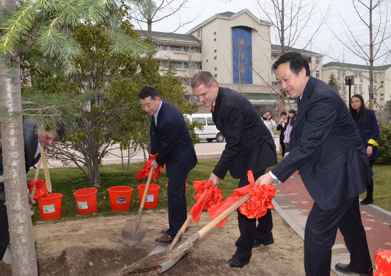 會談前,巴頓市長一行在蔡敬民、張文兵的陪同下,在我院國際友誼林種下了象征雙方友誼的常青樹,并為友誼樹培土、澆水,共同培育雙方的友誼。友誼樹將是我院與施特拉松市友好合作的見證。