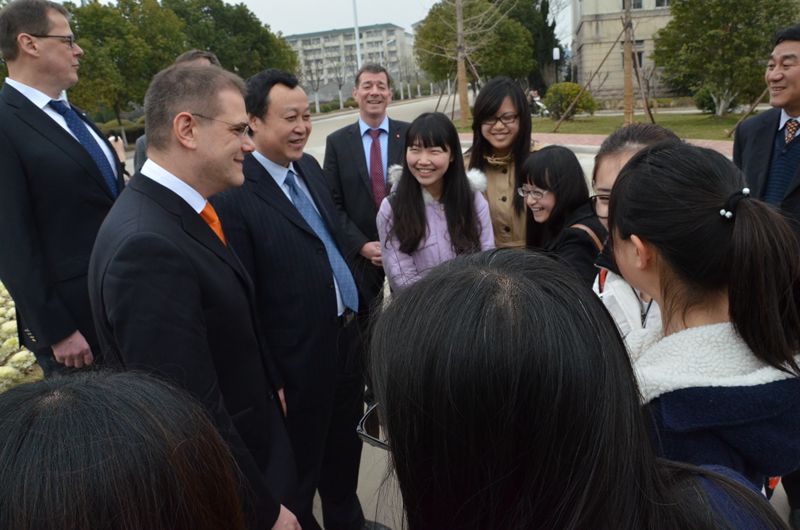 代表團成員、施特拉松應用科學大學校長霍恩在講話中也肯定了我院與德國合作辦學取得的巨大成果,德國應用型人才培養的經驗在合肥學院得到了很好的借鑒發展。他希望雙方不僅能在高等教育上進一步合作,還能夠在科研方面開展合作,提升服務地方水平能力。