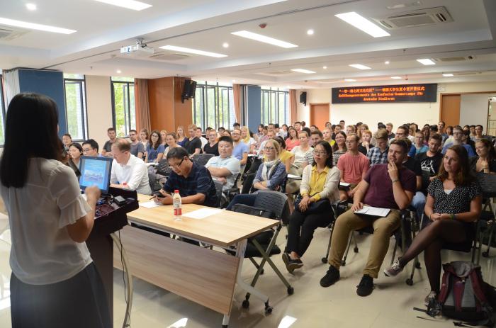 9月3日下午,“一帶一路之跨文化交流”——孔子學院德國大學生夏令營開營儀式在中德青年創業孵化樓會議室舉行。由我校施特拉爾松德孔子學院組織,來自我校在德友好學校——施特拉爾松德應用科學大學及奧斯納布呂克應用科學大學的近40名德國大學生參加了此次夏令營活動。校宣傳部部長劉樟樹、國際交流合作處副處長方宗保等出席了開營儀式。