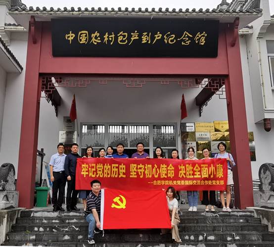 為慶祝中國共產黨成立99周年,深入學習貫徹習近平總書記關于加強黨史、新中國史學習教育的重要論述,國際交流合作處黨支部近期赴中國農村包產到戶紀念館,以“牢記黨的歷史、堅守初心使命、決勝全面小康”為主題,以黨史、新中國史、改革開放史、社會主義發展“四史”學習教育為主要內容,組織開展了“黨員黨史教育日”活動。
