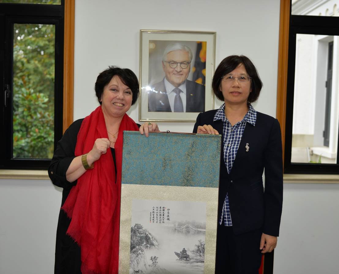 歐珍總領(lǐng)事于2019年訪問合肥學(xué)院,她表示學(xué)校的中德教育合作有力推動兩國在安徽省的經(jīng)濟和文化交流,培養(yǎng)的人才不僅為中德友好服務(wù),也將在長三角一體化發(fā)展中發(fā)揮更大作用。歐珍總領(lǐng)事欣然接受邀請,表示德國駐滬總領(lǐng)事館將支持研討會,將和我校進(jìn)一步對接出席研討會的具體細(xì)節(jié)。