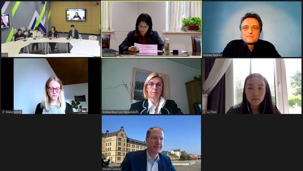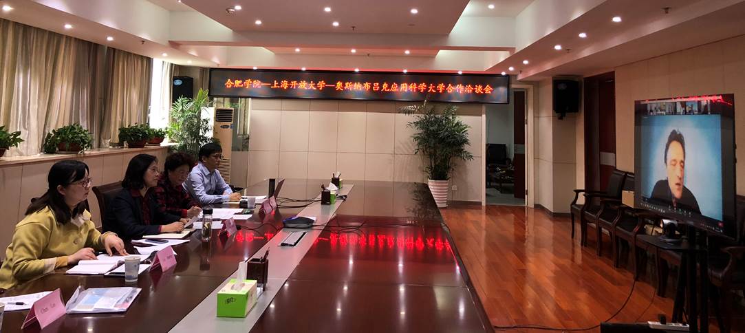 4月16日下午,合肥學院-上海開放大學-奧斯納布呂克應用科學大學三方合作洽談會于我校二區行政樓九樓西會議室展開。合肥學院校長吳春梅、上海開放大學校長袁雯、奧斯納布呂克應用科學大學校長Andreas Bertram參加了本次線上會議。