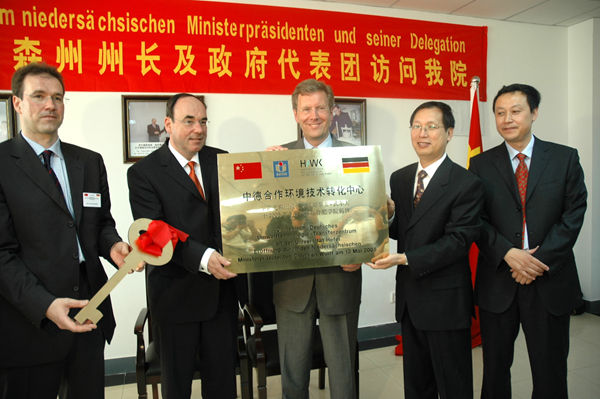 經(jīng)過萊勒斯教授與其團隊的不懈努力,2007年,合肥學(xué)院“城市固廢處理與資源化利用安徽省工程技術(shù)研究中心”最終獲批成立,成為了安徽省教育廳首批省級工程技術(shù)研究中心之一。2009年,萊勒斯教授數(shù)次訪華,前往合肥熱電集團了解共同承擔(dān)的“合肥市污泥摻燒工藝優(yōu)化”國際合作項目運轉(zhuǎn)情況,與垃圾焚燒廠設(shè)計單位和合肥熱電集團一起就合肥市垃圾的焚燒處理設(shè)計方案的可行性研究作了深入探討,積極地為合肥市污泥處理、垃圾管理等環(huán)境問題解決找出路,為合肥市的環(huán)境保護工作引入了先進的技術(shù)與理念,受到了企業(yè)高度認(rèn)可與歡迎。2010年,安徽省科技廳“安徽省固體廢棄物能源化利用工程技術(shù)研究中心”落戶我校。2011年合肥學(xué)院聯(lián)合三家企業(yè)組建了合蕪蚌自主創(chuàng)新綜合試驗區(qū)創(chuàng)新平臺——合肥環(huán)境工程研究院。在加強教學(xué)科研合作的同時,萊勒斯教授還積極關(guān)注德國下薩克森州與安徽省的經(jīng)貿(mào)合作,積極促成德國企業(yè)到安徽省的投資建設(shè),在他的積極努力推動下,德國的大陸輪胎公司在合肥市投資建設(shè),德國歐萊克公司也與肥西縣達成投資事項。
