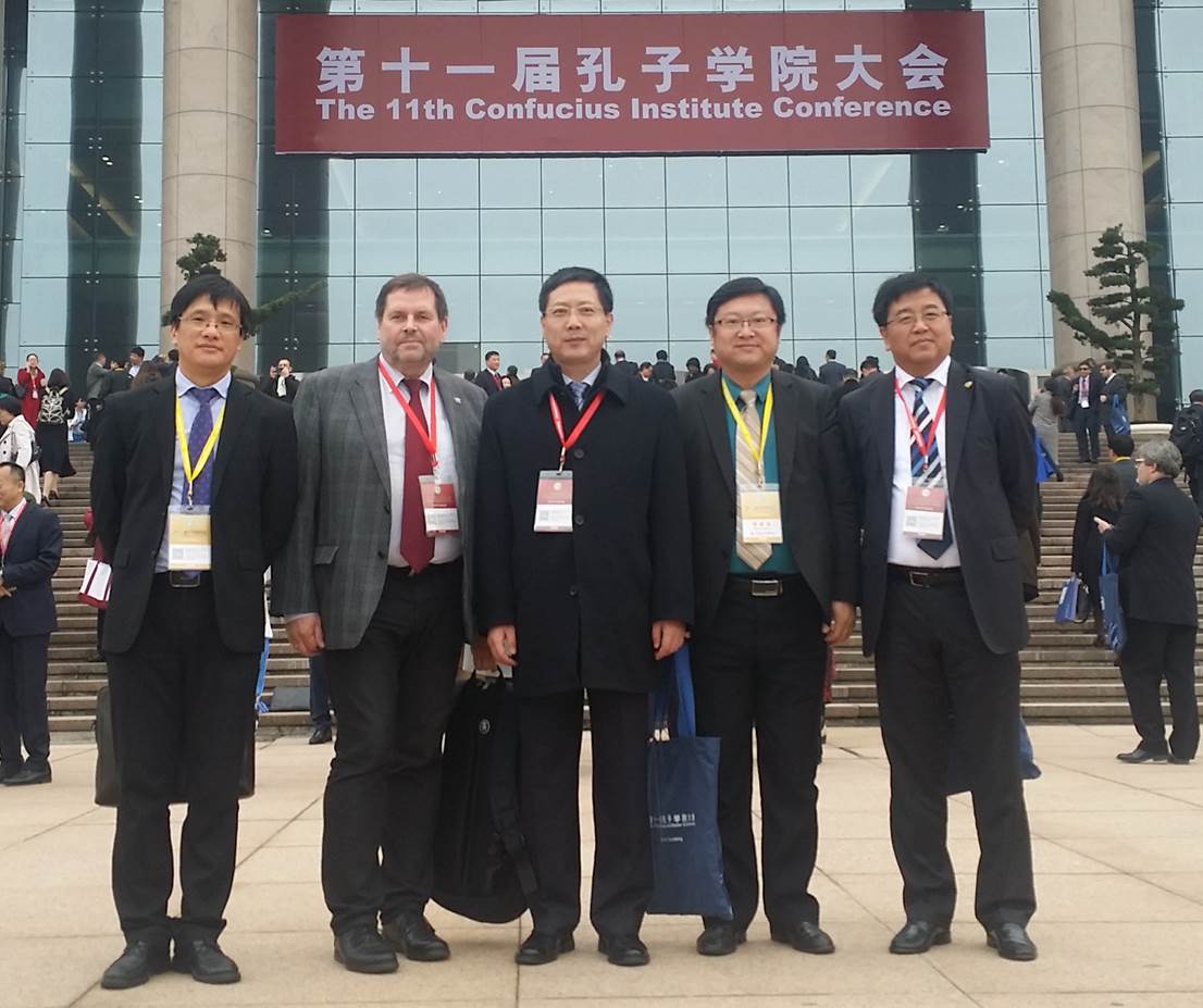 12月10日至11日,第十一屆全球孔子學院大會在昆明舉行,國務院副總理、孔子學院總部理事會主席劉延東出席并致辭。來自140個國家和地區的大學校長、孔子學院代表等共計2200余人參會。副校長劉建中率國際交流合作處處長賈峰、副處長張慧以及我校承辦的德國施特拉爾松德孔子學院中外方院長應邀出席了大會及相關活動。