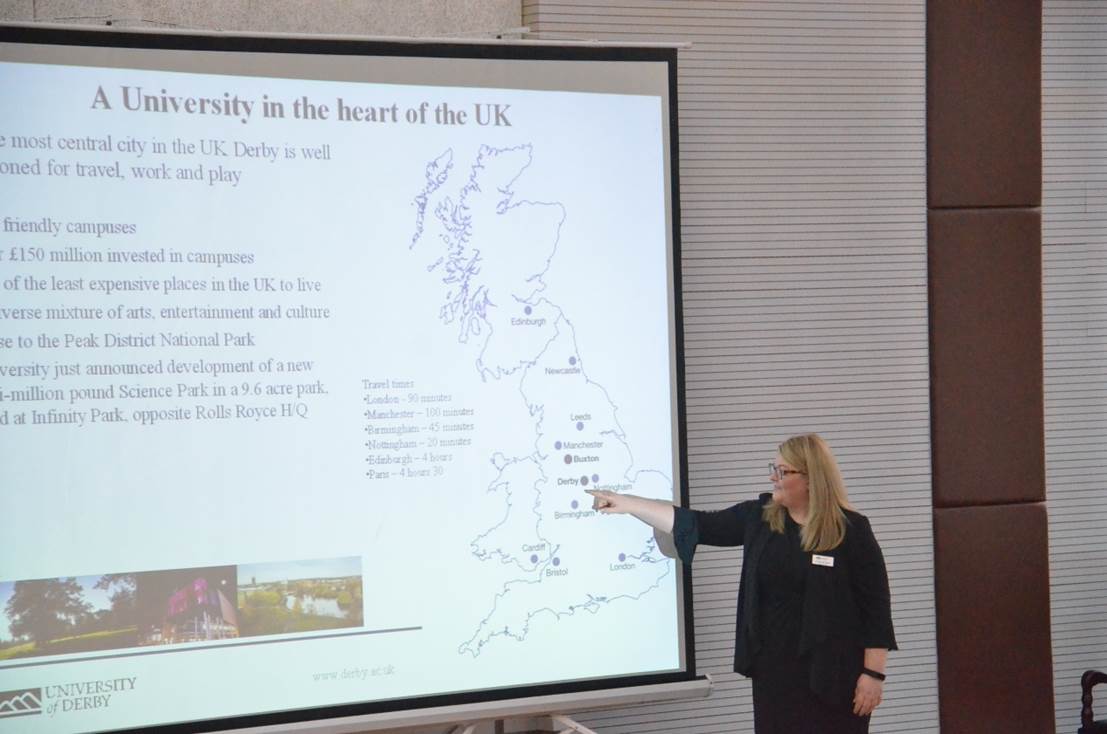 據悉,我校與德比大學的合作辦學項目分為本科3+1雙學位項目(大學三年級學生申請)、碩士4+1項目(大學四年級學生申請)。英國德比大學見面會增加了我校學生對德比大學的了解,為出國深造的學生提供了平臺,也有利于加強與英國德比大學的合作,促進了人才交流。我校與英國德比大學在2016年簽訂友好合作關系,根據雙方達成的協議,我校即將選拔優秀學生赴德比大學留學。