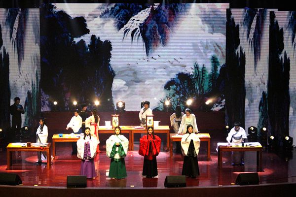 開(kāi)場(chǎng)舞蹈《繁花似錦》正式拉開(kāi)晚會(huì)序幕,身著各式民族服飾的舞者踏著激昂的樂(lè)聲閃亮登場(chǎng),如繁花搖曳生姿,象征著中俄兩國(guó)發(fā)展繁花似錦。古箏合奏《漁舟唱晚》婉轉(zhuǎn)悠揚(yáng),竹笛演奏《揚(yáng)鞭催馬運(yùn)糧忙》一氣呵成,活潑輕快的音符在演奏者指尖跳動(dòng)。書(shū)法、國(guó)畫(huà)及手工藝品等中國(guó)傳統(tǒng)文化展示,充滿古色古香的中國(guó)韻味,一曲驚艷的黃梅戲?qū)⒅袊?guó)傳統(tǒng)戲曲魅力展現(xiàn)的淋漓盡致,令人稱贊不絕。中俄兩國(guó)青年帶來(lái)的模特秀《Summer As Young》靚麗服飾與動(dòng)感音樂(lè)結(jié)合,將現(xiàn)場(chǎng)氣氛推向高潮,歡呼聲此起彼伏。武術(shù)表演《乾坤無(wú)極》精彩刺激,活靈活現(xiàn)的舞龍舞獅表演博得了現(xiàn)場(chǎng)觀眾陣陣掌聲。由中俄大學(xué)生及合肥學(xué)院大學(xué)生合唱團(tuán)帶來(lái)的合唱《山楂樹(shù)》《美妙的遠(yuǎn)方》《卡林卡》歌聲清澈動(dòng)聽(tīng),宛如天籟之音。