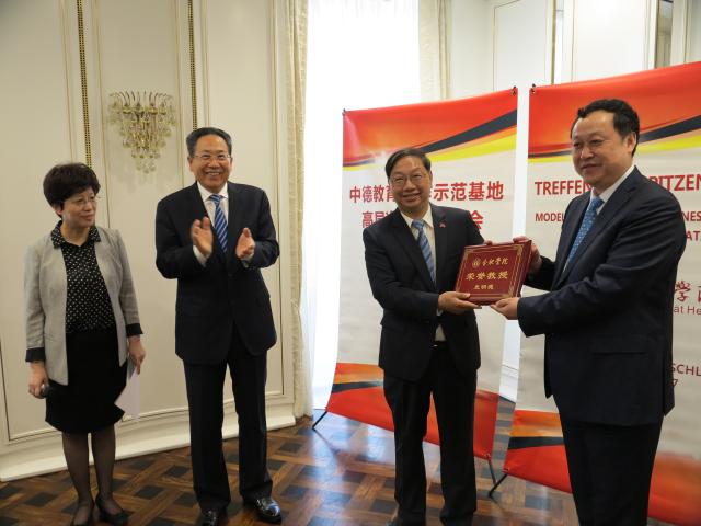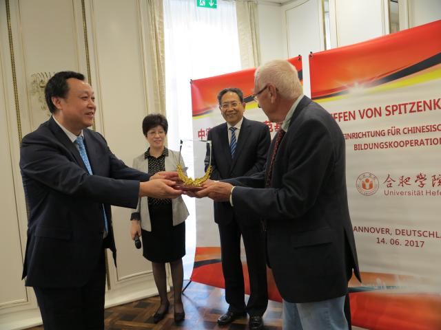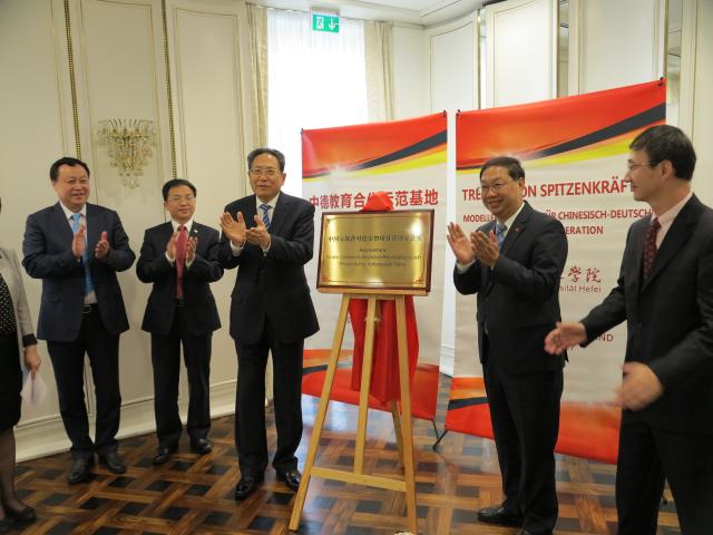 自2015年10月德國(guó)默克爾總理訪(fǎng)問(wèn)安徽以來(lái),中德合作示范基地在兩國(guó)政府關(guān)心支持下,建設(shè)工作取得積極進(jìn)展。6月7日至16日,省委書(shū)記李錦斌率安徽省經(jīng)濟(jì)友好代表團(tuán)赴美國(guó)、匈牙利、德國(guó)訪(fǎng)問(wèn)。李錦斌出席了合肥學(xué)院中德教育合作示范基地高層次人才引進(jìn)座談會(huì),與德國(guó)老專(zhuān)家、老教授們親切交談,聽(tīng)取他們對(duì)安徽開(kāi)展對(duì)德教育合作的意見(jiàn)建議。隨后,李錦斌見(jiàn)證了合肥學(xué)院引進(jìn)人才的集體簽約,并為對(duì)德引智項(xiàng)目管理辦公室揭牌。6月17日,安徽衛(wèi)視的安徽新聞聯(lián)播,詳細(xì)報(bào)道了錦斌書(shū)記出訪(fǎng)德國(guó)參加我校中德基地建設(shè)相關(guān)活動(dòng)。