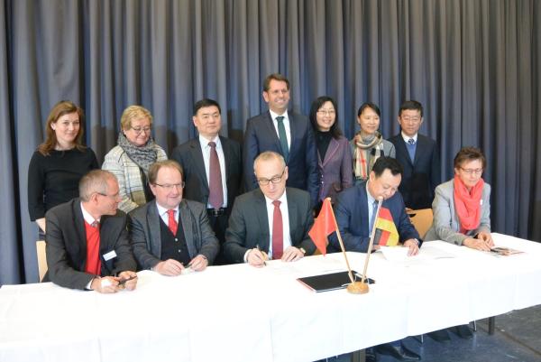 雅德大學校長在致辭中對中方代表團的到來表示歡迎,對已開展的合作表示滿意,并對未來的合作寄予希望。下薩克森州經濟部長致辭中表示,在教育的合作基礎上,期望未來能與中國進行更多經濟和文化的合作與交流。威廉港市市長首先祝賀合肥學院和雅德大學友好合作25周年,并期望在未來雙方能互派出更多的留學生。中國駐漢堡總領事館副總領事王薇在講話中表示今年是中德建交45周年,中德兩國在各個領域都有緊密合作。十九大繪制了中國未來的發展藍圖,一帶一路為中國的合作開拓新局面。中德兩國都確定維護世界和平,促進共同發展至關重要。合肥學院就是中德聯合辦學和兩國文化交流很好的例子。合肥學院黨委書記蔡敬民表示,合肥學院在與雅德大學合作過程中取得了很多成績,為兩國培養了優秀的人才,合肥學院非常重視與雅德大學的合作,并希望在今后的25年取得更輝煌的成就。在周年慶典上,蔡敬民書記和雅德大學校長簽署了新的合作協議,并為合肥學院德國校友會進行了揭牌儀式。