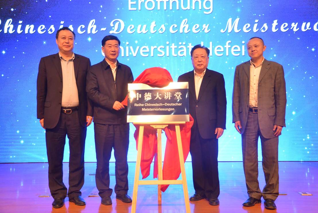 講座結束后,梅兆榮、慶承松、蔡敬民及秦俊峰四人為“中德大講堂”揭牌。