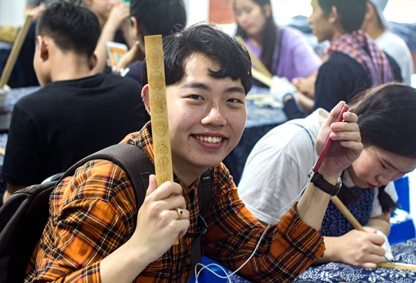 25日,在國際交流合作處潘洪、王月兩位老師的帶領下,留學生們來到了此次修學行的第一站“徽字號”徽文化體驗館。在這里,他們接觸到各種各樣徽州文化的知識,并體驗了“無夢到徽州”戒尺木雕的制作,在刀痕中感知文化韻味。隨后,留學生們去往黃山城市展覽館,于720度全景體驗劇場中觀賞黃山自然人文之美,體味徽州獨特深厚的人文內涵。