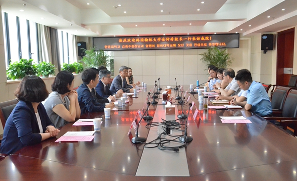 6月3日,韓國翰林大學校長金仲秀一行來訪我校,合肥學院黨委副書記、校長王其東于行政樓九樓會議室會見來賓。國際交流合作處處長賈峰、研究生處處長伍德勤、中國語言文學系主任詹向紅等陪同會見。